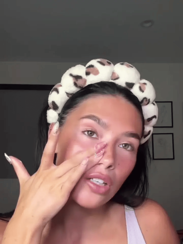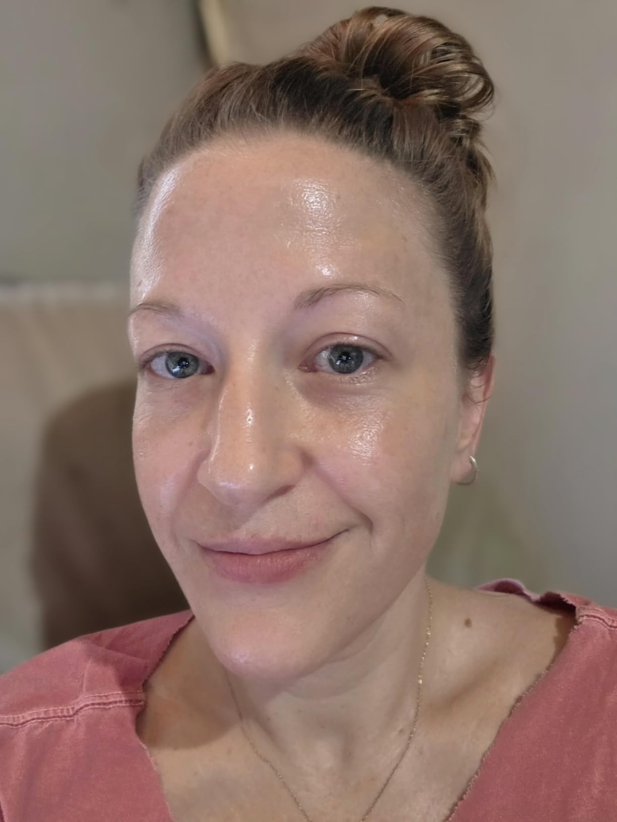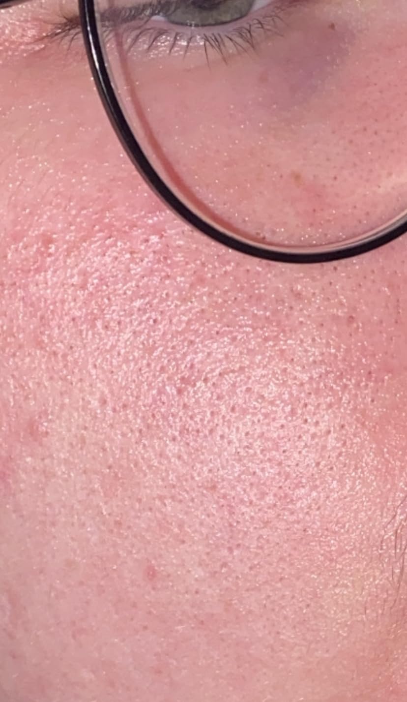Massera in i hela ansiktet (undvik ögon & läppar)